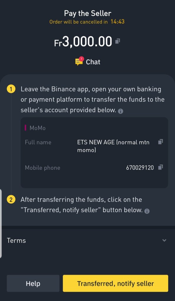 Once you chose the seller you wish to trade with, you input your amount, and make the payment. You can even use the “Chat” option to discuss with the seller on how to pay or to inform him you have made the payment. But note that once you complete the payment, you should click the “Transfered, notify seller” button at the bottom right. Please make sure to keep your conversation crypto related and strictly to the transaction. When you are sending payment using your favorite payment method, do not include any additional cost except the amount displayed on the payment page and also do not include any crypto details or comments in the transaction.