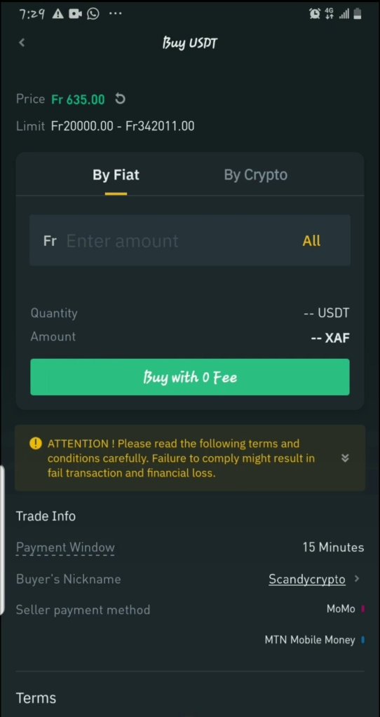 You can choose to put the amount by fiat, meaning you just input the amount in your currency that you wish to buy and the number of crypto will display below or you can use By crypto which means you put in your number of crypto and the amount in your currency display below. Once you are satisfied with the amount, go ahead and Buy with zero fee.
