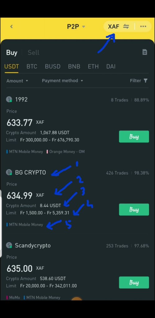 So with this in mind, you will need to set your currency to be on your local currency so as to help filter the market and present you with features which are familiar with your area. For example if we choose “XAF” which is the currency of Cameroon, it will help to filter sellers who are from your area and payment method which are familiar in your area so that you can better understand the trade and buy easily.