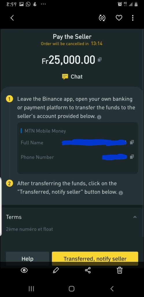 Once you want to make the payment, choose your payment method and the seller’s details will be displayed together with the amount to pay and some directions on how to go about it, so as to make the payment or you chat with the seller to direct you how to make the payment. Once you have completed the payment, click on “Transfered, Notify seller” and the crypto will be on releasing mode. You can also go ahead and write the seller on chat that you have made the payment.