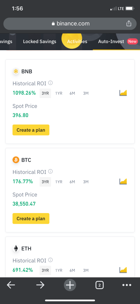 en plus de cela, Auto-Invest prend en charge l’achat de crypto avec des pièces stables (USDT, BUSD), tandis que Recurring Buy prend en charge fiat avec les paiements par carte de crédit/débit. C’est donc à vous de choisir avec lequel vous allez.